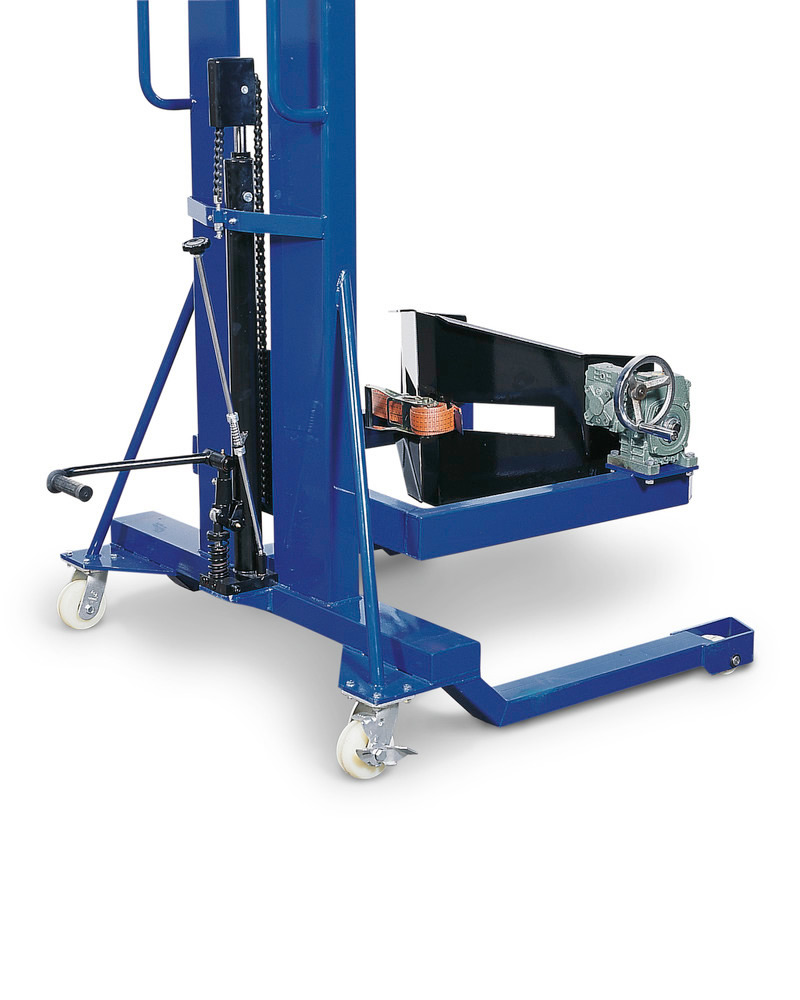 Wide wheelbase for positioning “around” Euro pallets and denios spill pallets