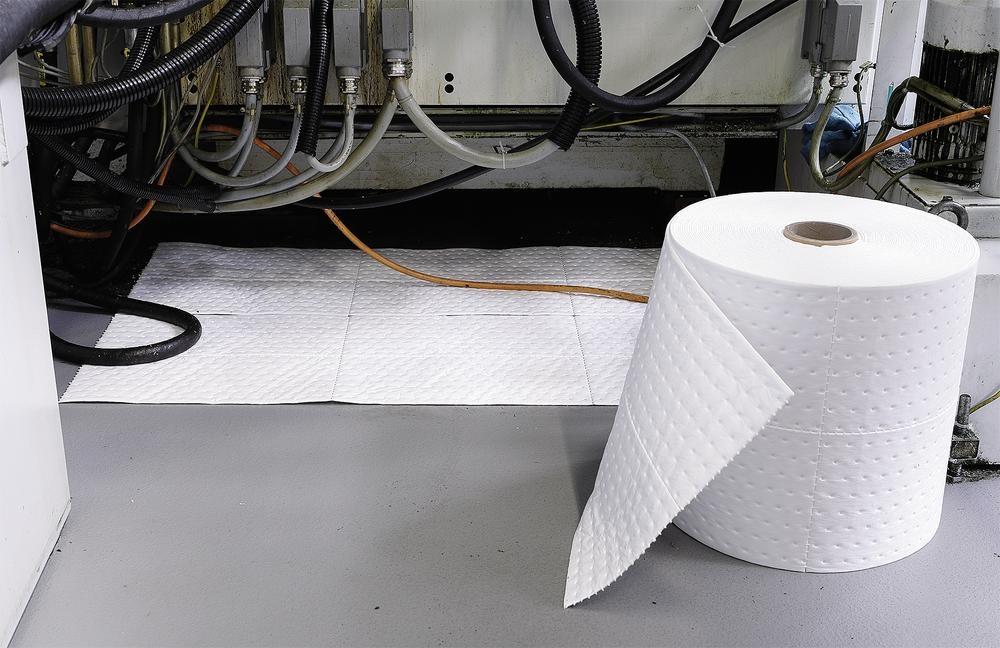 Extremely effective absorbent mats in polypropylene, with a porous fine fibre structure on both sides for quick absorption of leaked liquids