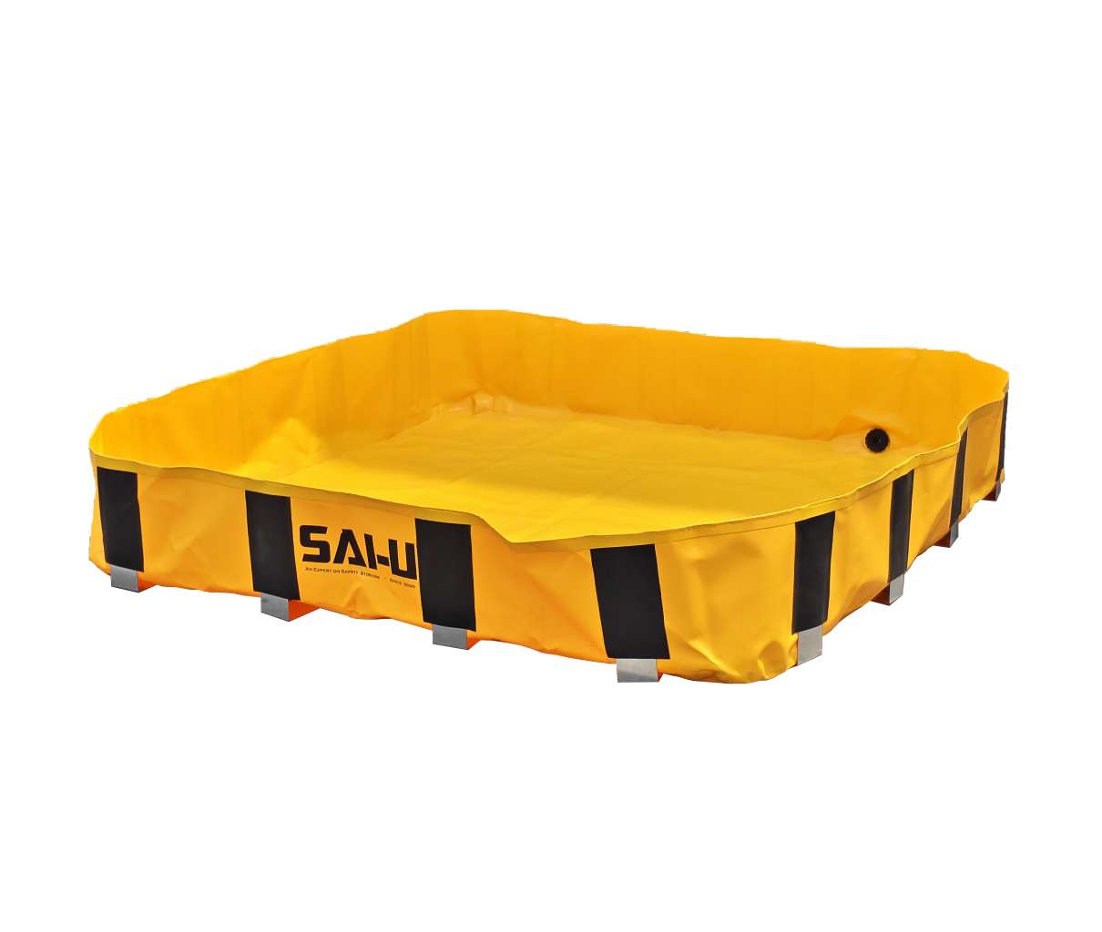 The spill containment berm has a sturdy steel bracket.