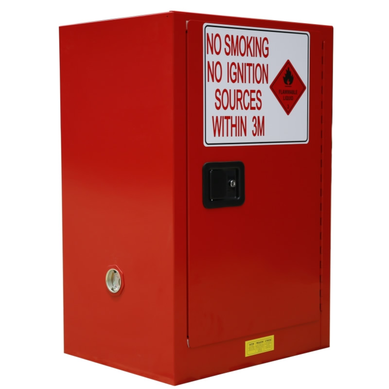 独有的带漏液槽镀锌层板,防腐蚀,防漏,可承托400lbs的钢制安全罐。使用镀锌板折弯而成,带漏液槽设计把溢漏引向集油槽,以保护存货,并把液漏锁在柜中;牢固的镀锌钢板隔板可以调整上下高度,6.8厘米的上下调节度以增加适用性。焊接的托架与搁板互锁,稳固到“不摇摆”的程度;不会像轻薄的托臂,那样容易脱落。