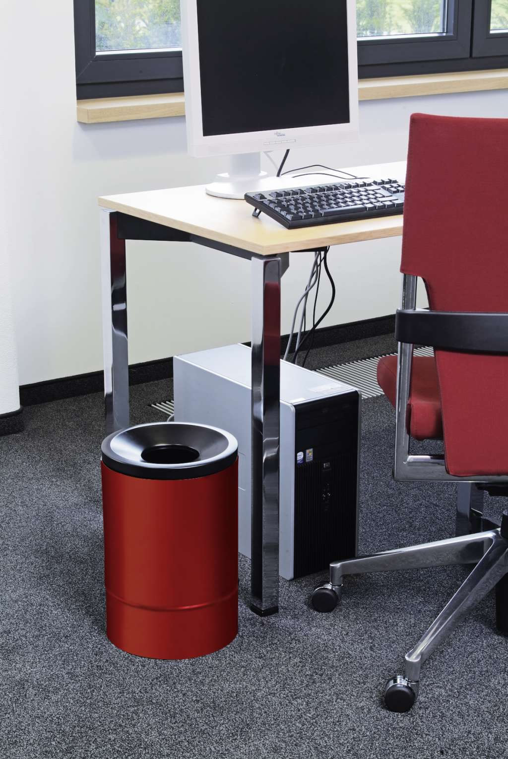 Flammex principle: in the event of a fire, the combustion gases accumulate under the lid rim and "suffocate" the fire as no more oxygen can get in to the container.