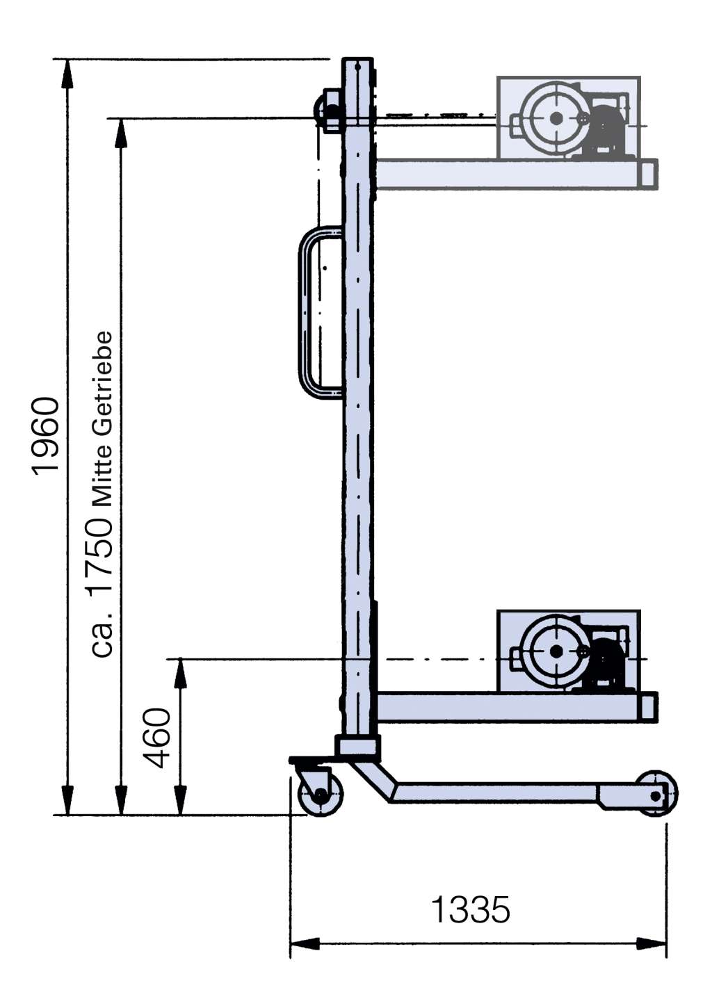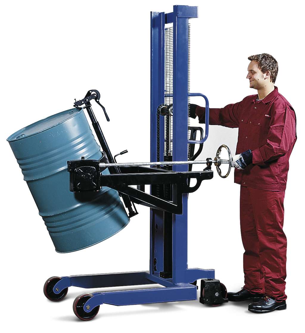 Safety handle can be operated with one hand and has A 3 way function (lifting / lowering / transporting)