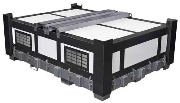 DENIOS provides UN-certified transport and storage containers in metal and plastic constructions. These fire-rated battery containers deliver safe, compliant solutions for transporting and storing both intact and damaged batteries. The integrated PyroBubbles® filling system effectively suppresses fires and prevents thermal runaway propagation.