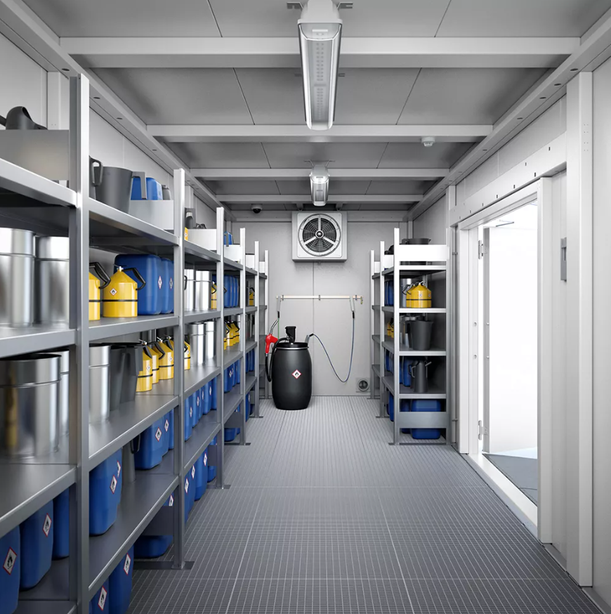 DENIOS fire-rated storage systems feature a dual-frame design, delivering certified REI 90 fire protection from both internal and external exposures. Custom-designed to meet diverse requirements across global operations, these containers serve as a cost-efficient alternative or an extension to indoor storage capacity. The solution ensures full compliance with statutory safety and environmental regulations.